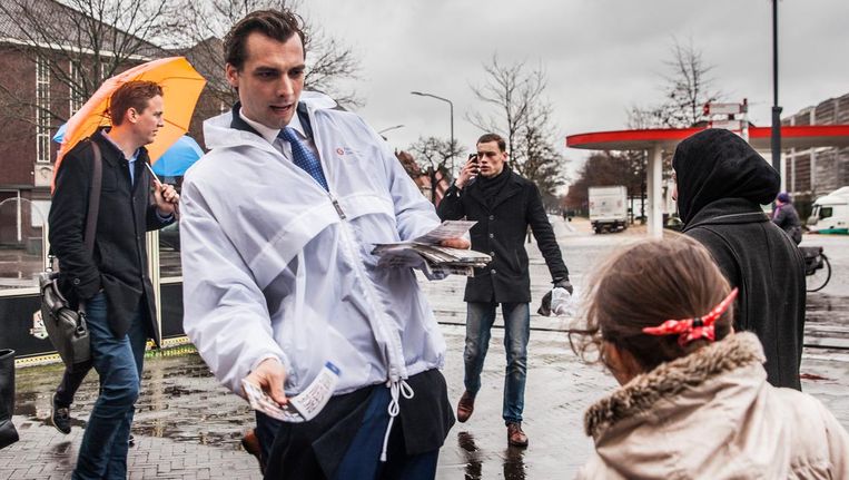 Baudet is net in Venlo, de stad van zijn grote concurrent Wilders. Amper een kwartier eerder zet zijn chauffeur hem af op het treinstation, waar zijn campagneteam - een vijftal medewerkers en zo'n tien vrijwilligers - al drie kwartier op hem wacht. Bij het openen van zijn portier toont Baudet, netjes in pak, zijn brede glimlach aan de camera's van Omroep Venlo. 'Hebben we een beetje zin in de laatste loodjes?', vraagt hij. Hijzelf in elk geval wel, gesterkt door 'eigen peilingen' van FvD. 'We gaan misschien wel tien zetels pakken.'