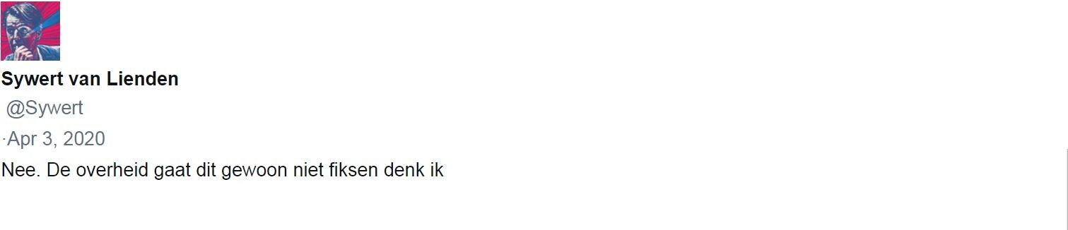 Van Lienden houdt zich daarna in, al schrijft hij op 10 april op twitter wel dat het kabinet moet ‘leren samenwerken en niet denken vanuit verkokerde bureaucratieën’. ‘Als dat gebeurt, dan zal ik met plezier de afgelopen weken vergeten.’