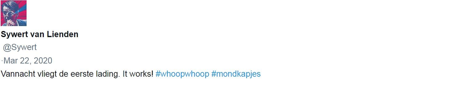 Al op 22 maart kan Van Lienden de eerste doorbraak melden: ‘Vannacht vliegt de eerste lading. It works!’