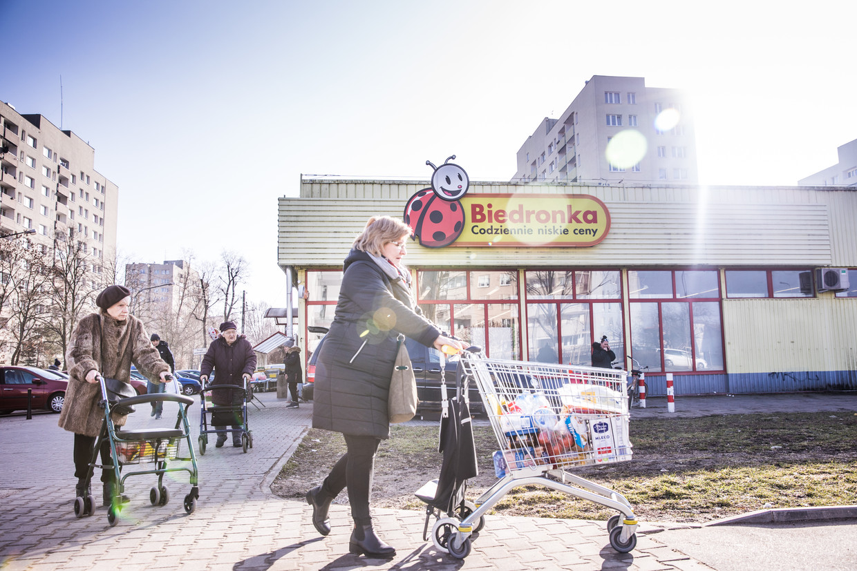 Ook op een doordeweekse ochtend is het druk in een Biedronka-filiaal in het noordwesten van Warschau. In de populairste budgetsupermarkt van Polen stapelen Ivanna (23) en Agata (28) kartonnen dozen met pakken koffiemelk op elkaar. De jonge vrouwen, die knalgroene shirts dragen en een button met hun naam hebben opgespeld, zijn omringd door klanten, veelal met winkelwagentjes.