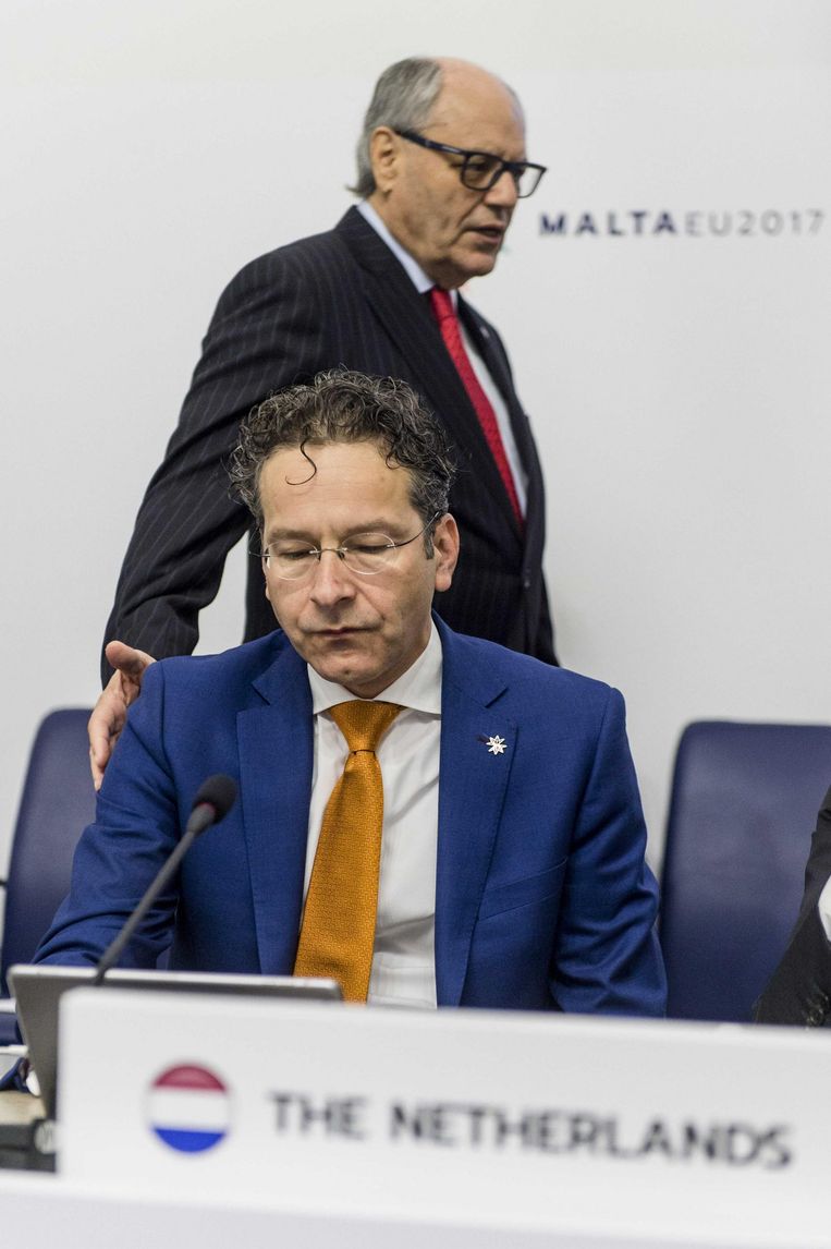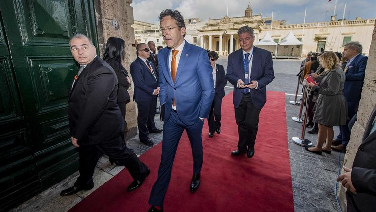 'Ik sta er nog', zegt een montere Dijsselbloem (51) zaterdag na afloop van een vergadering met de Europese ministers van Financiën in het Grootmeesterlijk Paleis op Malta. Ondanks de wereldberoemde en uitgebreide collectie antieke wapens aldaar, zit zijn hoofd er nog op. Maar de woede en haat die over hem heen raasden na die ene uitspraak, hebben hem zichtbaar geraakt: de mondhoeken staan nog iets verder naar beneden.