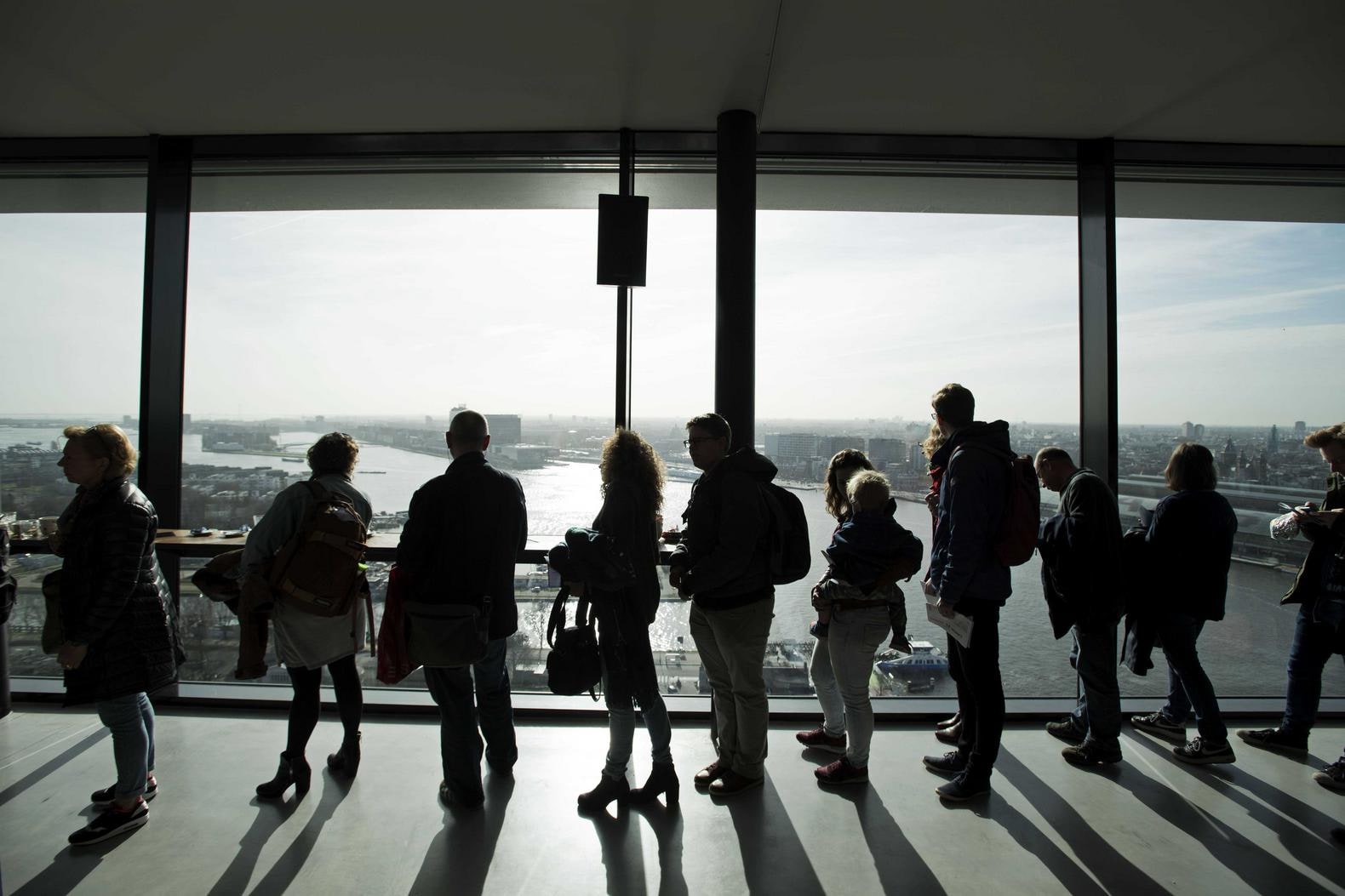 Honderden Amsterdamse kiezers stonden vanochtend in de rij te wachten om te stemmen in het hoogste stemlokaal van Nederland. Verkiezingsdag blijkt een buitenkansje om eens gratis het uitzicht te bewonderen vanaf de twintigste verdieping van de A’DAM Toren op de noordoever van het IJ: de toegangsprijs is gewoonlijk 12,50 euro, vandaag is een stempas voldoende.