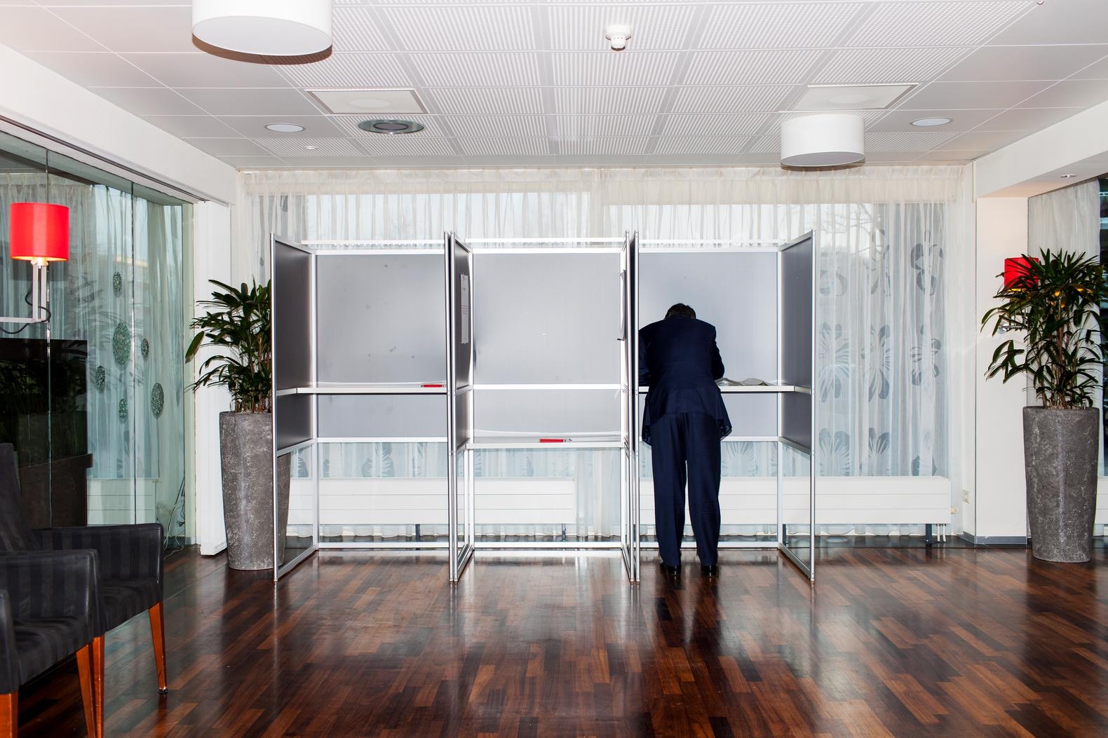 Het is toegestaan om na negen uur nog te stemmen, maar dan moet de kiezer al wel voor die tijd binnen zijn in het stemlokaal. Het stembureau op het stadhuis in Nijmegen sloot uiteindelijk om half tien.