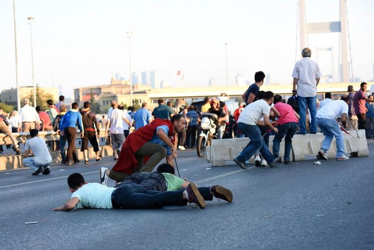 Soldaten hebben het vuur geopend op burgers op de brug over de Bosporus, meldt het Turkse persbureau Dogan. Ze protesteren tegen de staatsgreep. Op beelden is te zien hoe mensen naar dekking zoeken als er op hen wordt geschoten.