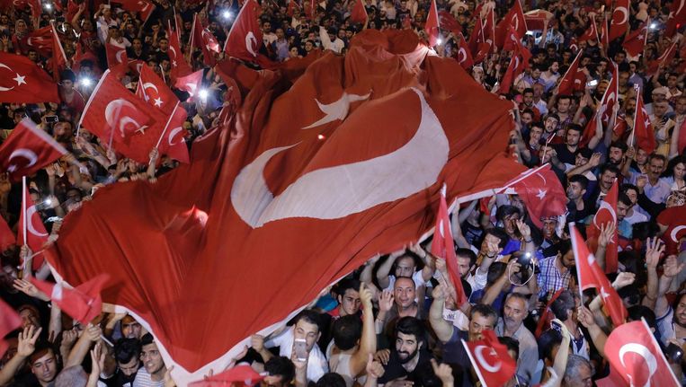 Ondanks de nieuwe zuiveringen namen tienduizenden Turken zondag deel aan een manifestatie op het centrale Taksimplein in Istanbul. Ze zwaaiden met vlaggen en riepen op tot eenheid. Onder hen waren opvallend genoeg zowel aanhangers van de belangrijkste (seculiere) oppositiepartij CHP als van Erdogans AK-partij. 'Dit is een dag voor eenheid, een dag om op te staan tegen coups en dictatoriale regimes', zei CHP-leider Kemal Kilicdaroglu in een toespraak. De manifestatie is vreedzaam verlopen.