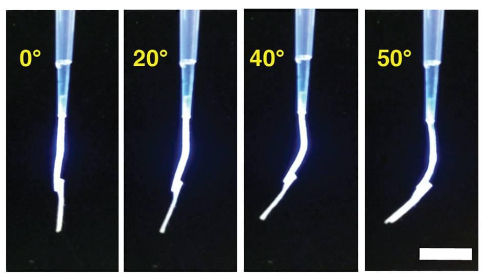 In de reageerbuizen blijken de sliertjes door de gezamenlijke reactie van alle motormoleculen snel naar een lichtbron toe te kunnen buigen. In experimenten samen met materiaalfysici in Groningen tilden de onderzoekers met hun spiertje een papiersnipper van een halve milligram op.