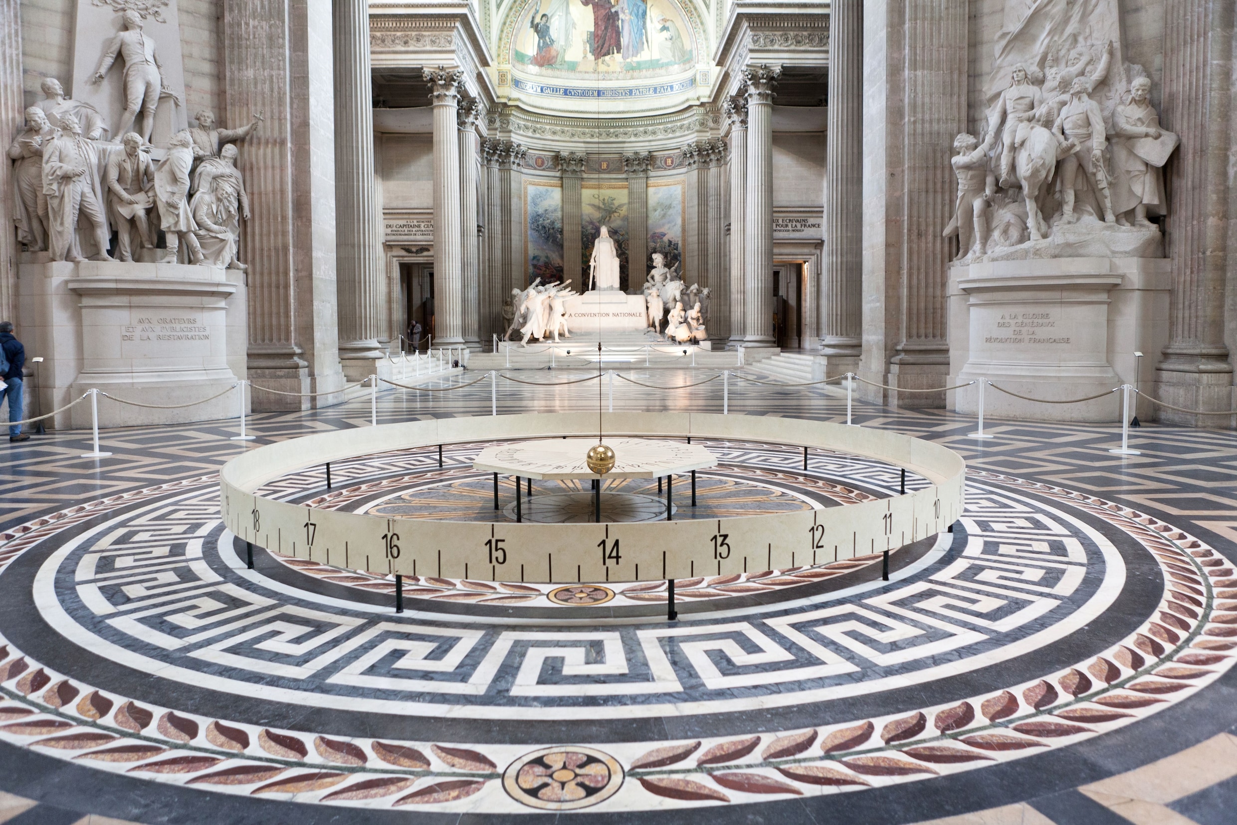 Met dit experiment demonstreerde de Franse natuurkundige Léon Foucault in 1851 immers dat de aarde draait; toen overigens niet in het Panthéon, maar in het observatorium van Parijs. Het patroon dat de zwaaiende slinger tekent – bij het oorspronkelijke experiment lag er zand op de vloer om dat te laten zien – is het gevolg van een samenspel van de zwaartekracht en de aardrotatie en volgt keurig de natuurwetten die je daarover in moderne natuurkundeboeken kunt terugvinden.